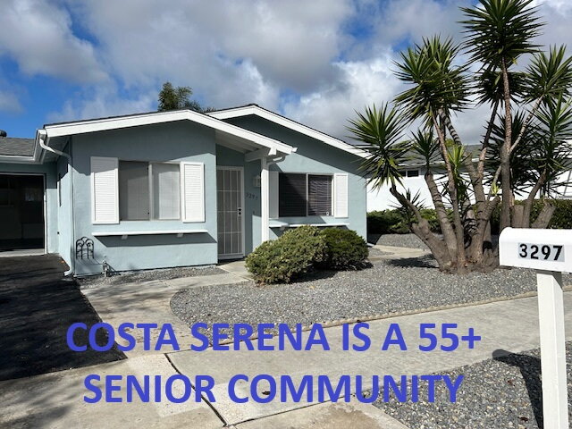 Beautifully updated home in a 55+SENIOR COMMUNITY. Must follow Costa Serena CC&R guidelines & Age Restrictions. At least one resident must be at least 55 Years Old and spouse/partner to be 45+ years old. Recently updated kitchen cabinets, counters, SS appliances, including a new refrigerator as well! Bathroom has been recently updated as well. Newer carpet in bedrooms. Large covered patio in easy to maintain backyard. On a clear day, enjoy OCEAN VIEWS and BEAUTIFUL SUNSETS. Easy access to the 78 & 5 freeways, minutes from the beach, shopping, and restaurants. This home is beautiful and ready to move in! No smoking please. Please call Broker, Anne Grimes, to get more information and to schedule an appointment to view. Please do not disturb current tenants. 24 hour notice required to view.